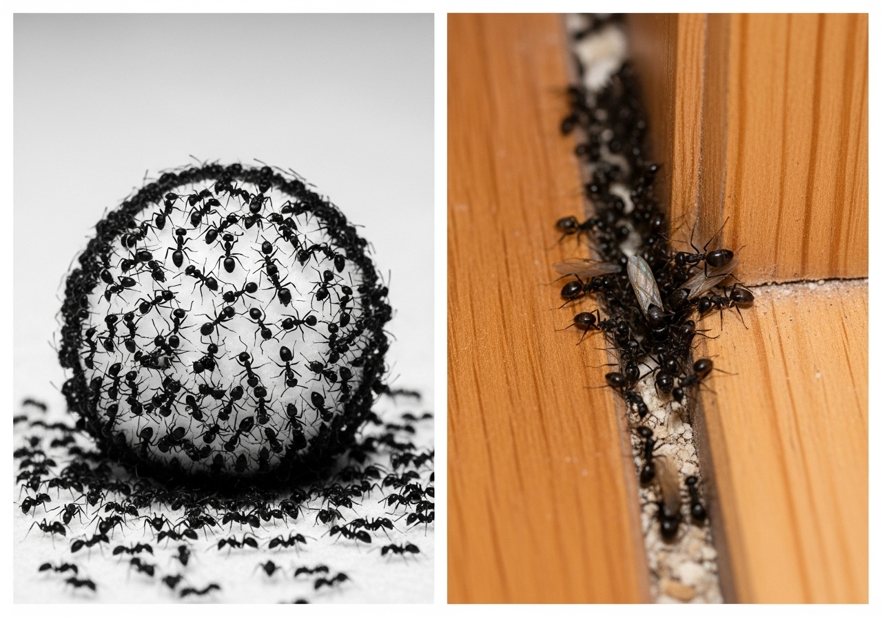 Las hormigas sociales, como las hormigas domésticas comunes, viven en colonias organizadas. Durante el invierno, las colonias buscan protegerse del frío y la escasez de alimentos. Trasladar la colonia al interior de un hogar ofrece una mayor protección contra los elementos y asegura la supervivencia de la reina y sus obreras.